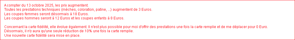 Tarifs Homme : |